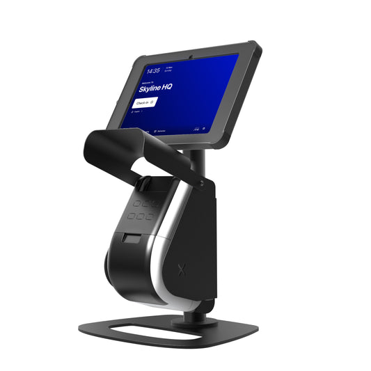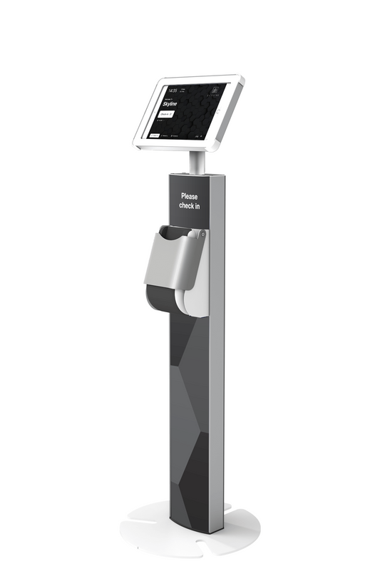 A smaller self-service option for lower desks to allow check-in for all types of visitors and instant badge printing on arrival.